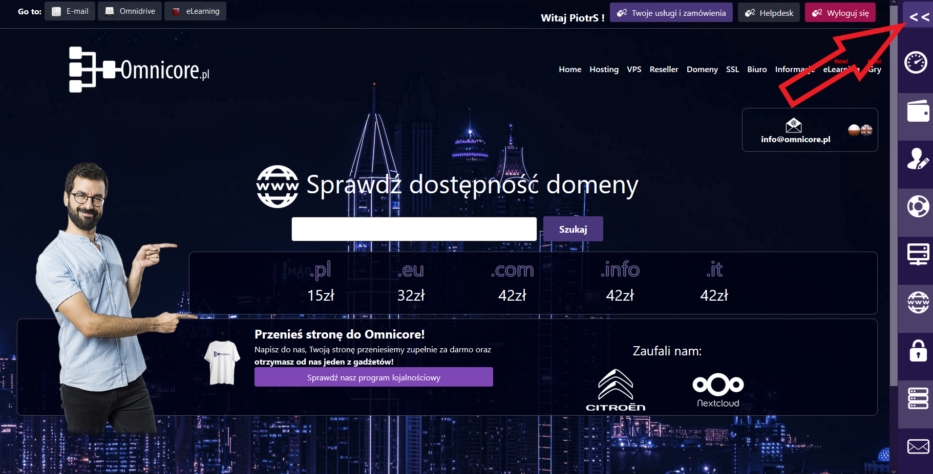 2. Zaloguj się na Omnicore.pl i rozwiń menu:
