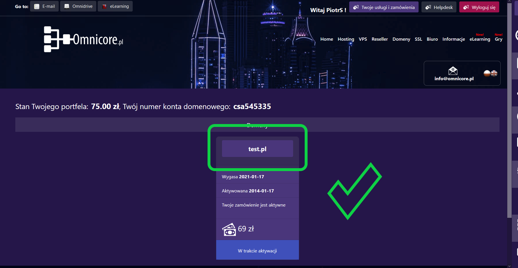 5. To wszystko! Teraz tylko zaczekaj, aż po potwierdzeniu transferu domena zmieni swój status w naszym panelu.
